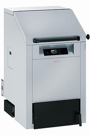 phasen, vom Anheizen über den Lastbetrieb bis zum Ausbrand, permanent überwacht und über die motorisch betriebenen Luftklappen im optimalen Bereich gehalten. Durch seinen großen Füllraum bietet er hohen Komfort zum Heizen, ob mit Stückholz, Holzbriketts oder Holzresten in loser und stückiger Form. Im Nennwärmebereich von 40 bis 75 KW kann der Scheitholzkessel mit Halbmeterscheiten bestückt werden.